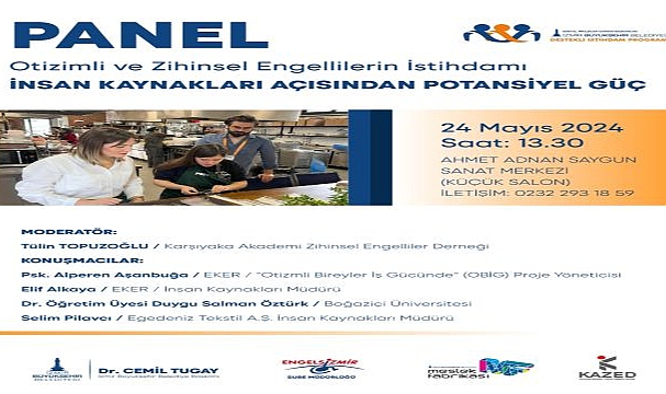 İzmir Büyükşehir Belediyesi Engelsizmir Şube Müdürlüğü, Destekli İstihdam Programı kapsamında "Otizmli ve Zihinsel Engellilerin İstihdamı: İnsan Kaynakları Açısından Potansiyel Güç" adlı panel düzenleyecek.