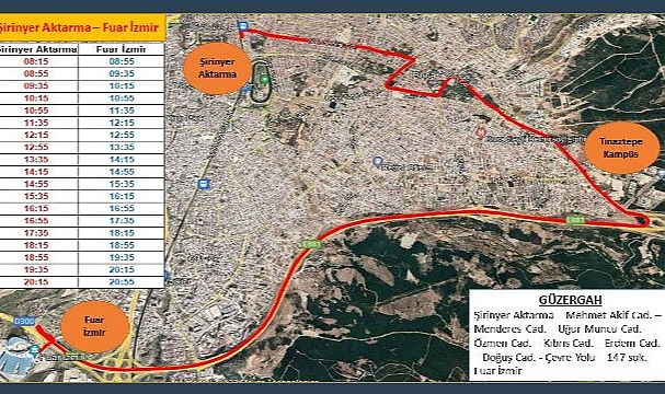 Halen hizmet veren 92 numaralı Fuar İzmir - Üçyol Metro (Karabağlar ve Metro bağlantılı); 610 numaralı Fuar İzmir - Gaziemir Semt Garajı (İZBAN bağlantılı) ve 650 numaralı Fuar İzmir - Balçova (Üçkuyular İskelesi ve F.Altay Metro İstasyonu bağlantılı) otobüs hatları, ek seferlerle güçlendirilecek.