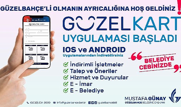 Güzelbahçe Belediye Başkanı Mustafa Günay’ın 100 gün lansmanında da tanıtımını yaptığı GÜZELKART uygulaması artık cepte. Vatandaşlar anlaşmalı olan kurumlarda, işletmelerde bu uygulama sayesinde indirimli olarak faydalanacaklar.