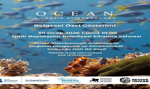 İzmir Büyükşehir Belediyesi, İzmir Akdeniz Akademisi ve Akdeniz Koruma Derneği iş birliğiyle, David Attenborough’nun anlatımıyla hazırlanan Ocean with David Attenborough belgeselini 30 Ocak 2026’da saat 19.00’da Elhamra Sahnesi'nde izleyicilerle buluşturuyor.