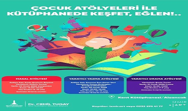Yürütücülüğünü Didem Tarlalı’nın yapacağı 8-10 yaş aralığı çocuklara yönelik Sade Şeylerin Büyüsü Masal Atölyesi 29 Ocak Çarşamba günü 15.00-16.00 saatleri arasında yapılacak. Yürütücülüğünü Fatoş Mutlugün ve Ertuğrul Mutlugün’ün yapacağı 10-12 yaş aralığı çocuklara yönelik Sonuna Sen Karar Ver Yaratıcı Yazma Atölyesi, 30 Ocak Perşembe günü 15.00-16.30 saatleri arasında düzenlenecek. Yürütücülüğünü Şeniz Turan’ın yapacağı 7-9 yaş yaş aralığı çocuklara yönelik Yaratıcı Drama Atölyesi ise 31 Ocak Cuma günü 15.30-17.00 saatleri arasında gerçekleştirilecek. Kent Kütüphanesi Alsancak’ta yapılacak tüm atölyeler ücretsiz olacak.